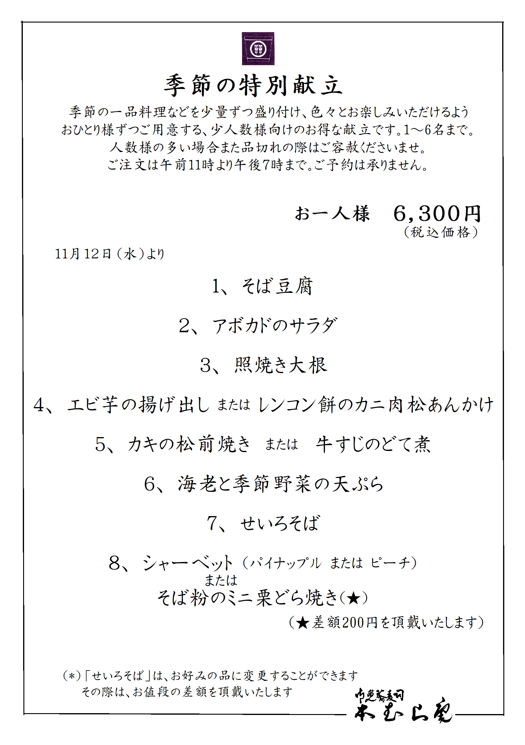 皆様お気軽にご利用の上、旬の「本むら庵」をお楽しみくださいませ。