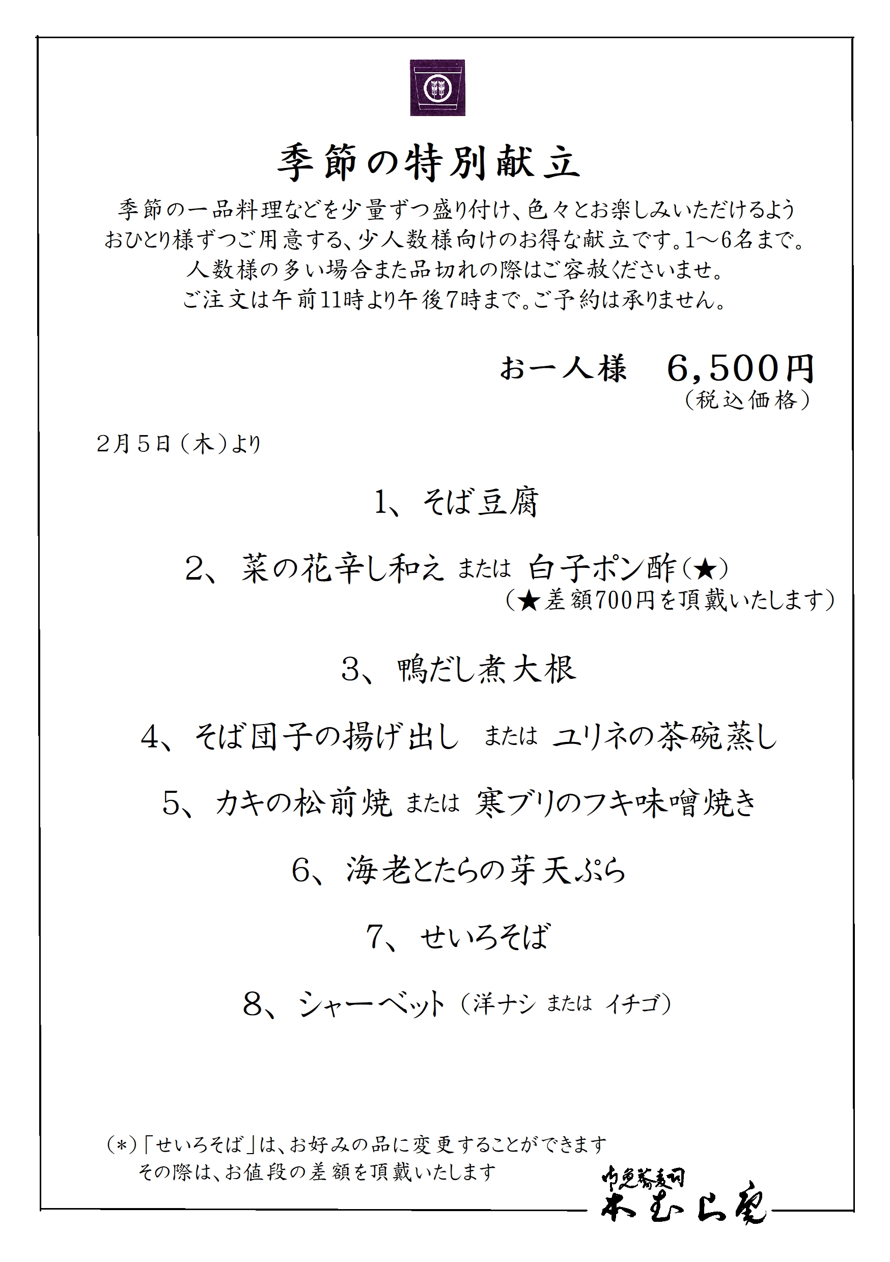 皆様お気軽にご利用の上、旬の「本むら庵」をお楽しみくださいませ。