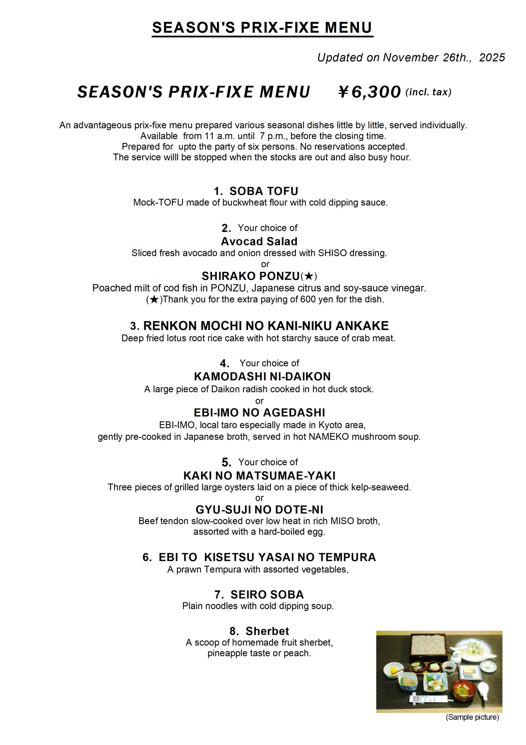 【SEASON’S PRIX FIXE MENU・・・6,300YEN】
