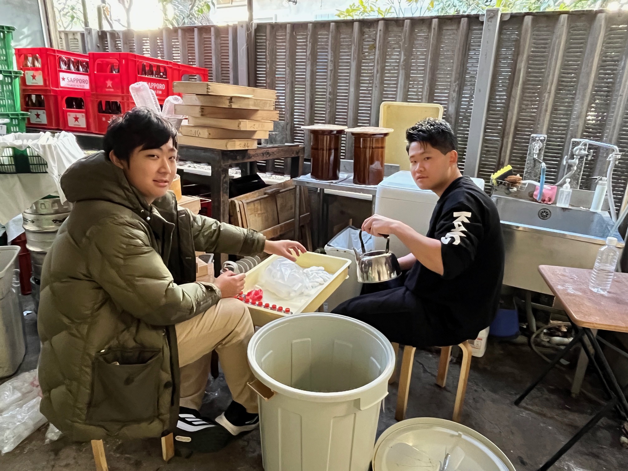 ↓ 店の裏手では、職人がひたすら一日「玉子焼き」を「焼く」に専念、